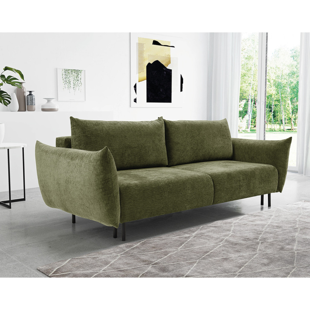 A kanapé egyszerűen nyitható, így gyorsan kényelmes fekhellyé alakítható. A beépített ágyneműtartó extra tárolóhelyet biztosít, amely segít rendben tartani az otthont – ideális takarók, párnák vagy ágynemű számára. Kényelmes ülő- és fekvőfelülete hosszú távon is komfortos használatot nyújt.