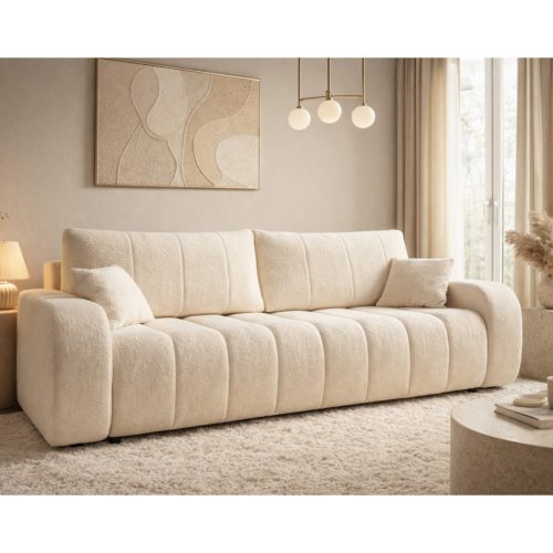 A kanapé egyszerűen nyitható, így gyorsan kényelmes fekhellyé alakítható. A beépített ágyneműtartó extra tárolóhelyet biztosít, amely segít rendben tartani az otthont – ideális takarók, párnák vagy ágynemű számára. Kényelmes ülő- és fekvőfelülete hosszú távon is komfortos használatot nyújt.