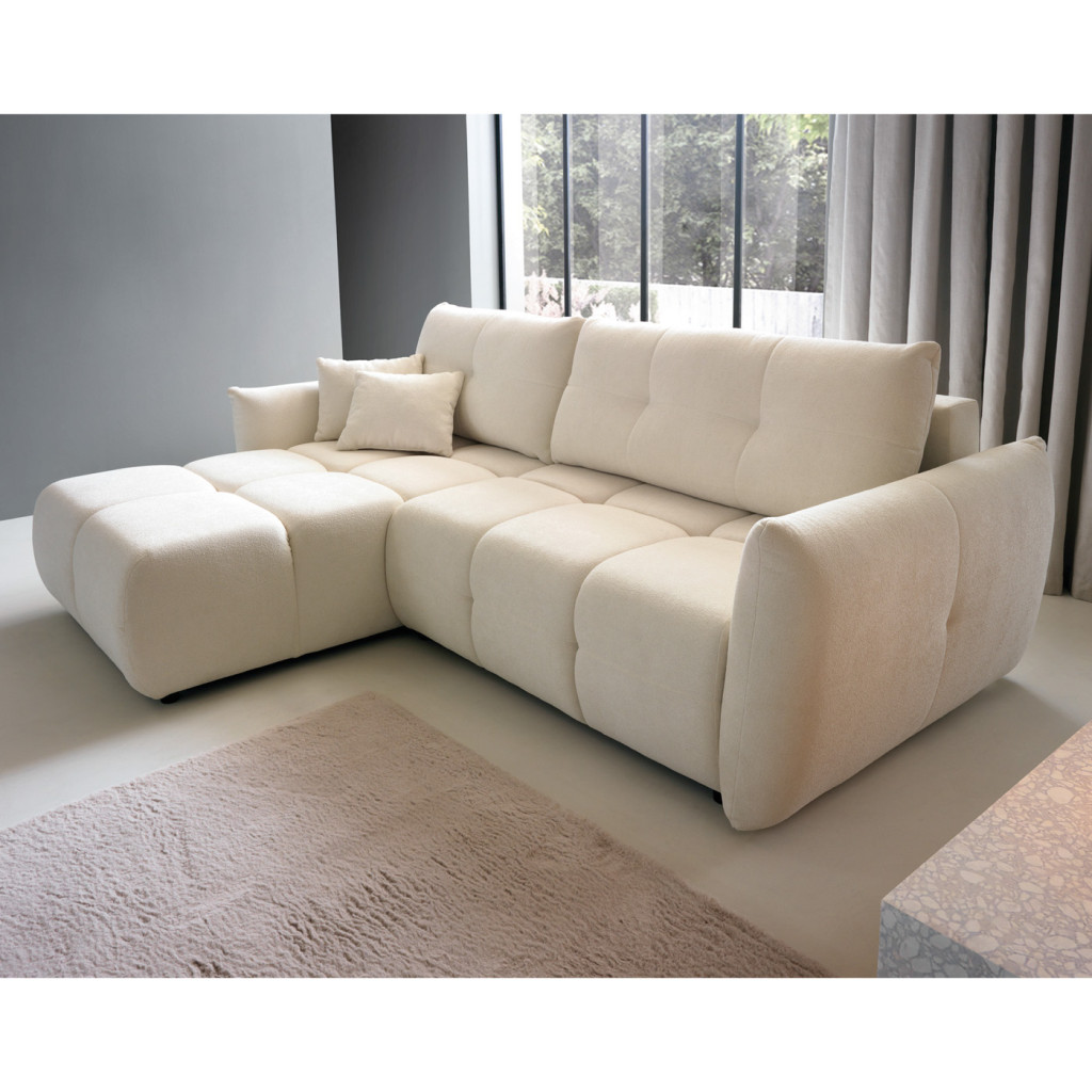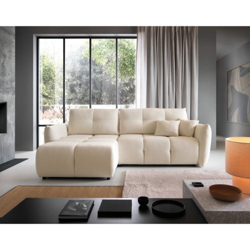 Az L alakú kialakítás bőséges ülőhelyet biztosít, miközben modern megjelenésével harmonikusan illeszkedik a legtöbb lakberendezési stílushoz.