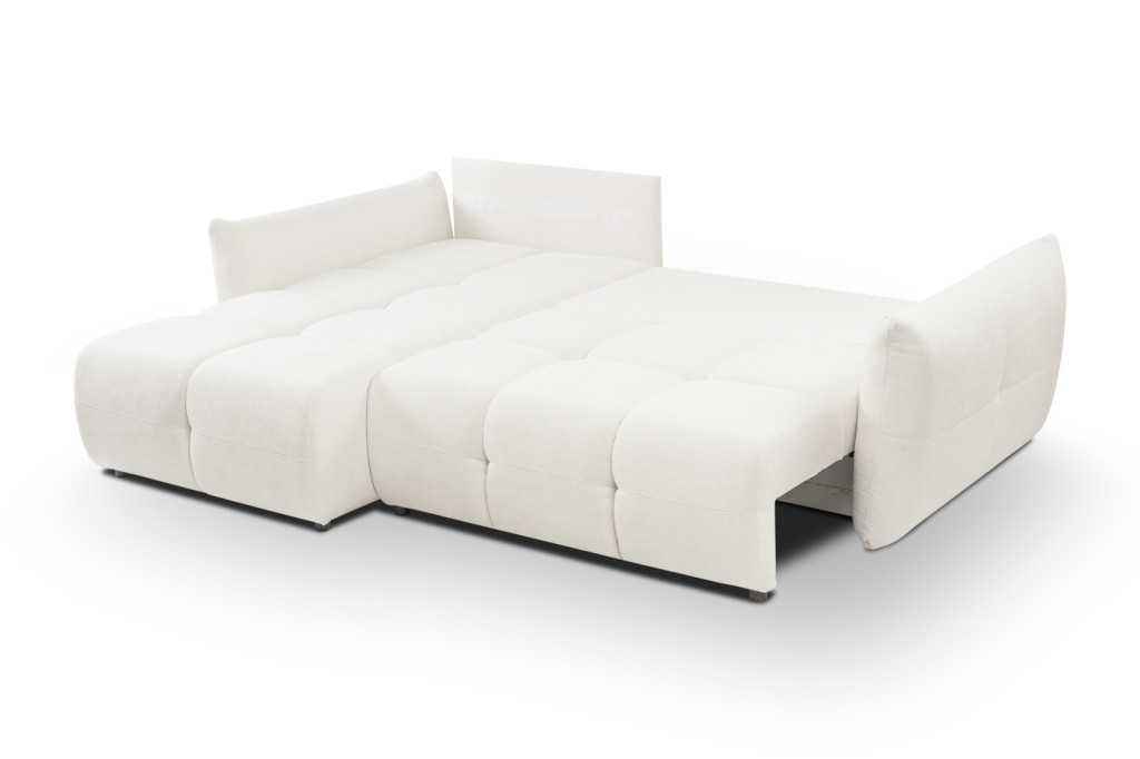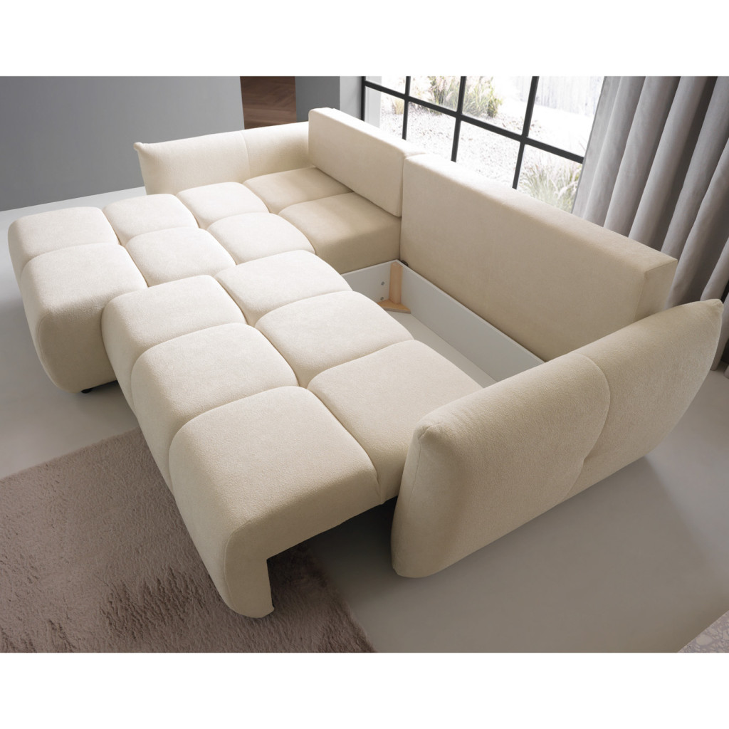 A kanapé nyitható funkcióval rendelkezik, így könnyedén kényelmes fekhellyé alakítható. A beépített, tágas ágyneműtartó praktikus tárolási lehetőséget kínál takarók, párnák és ágynemű számára, segítve az otthon rendezettségét.