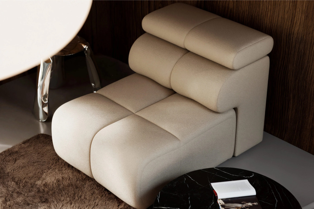 A dekoratív varrások kiemelik a fotel modern dizájnját, miközben könnyedséget és egyedi karaktert adnak a formának. A Bloom fotel az esztétika, a funkcionalitás és a kényelem tökéletes egyensúlyát képviseli, moduláris kialakításának köszönhetően pedig kiválóan illeszkedik bármilyen pihenőtérbe.