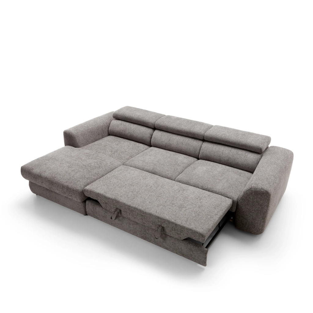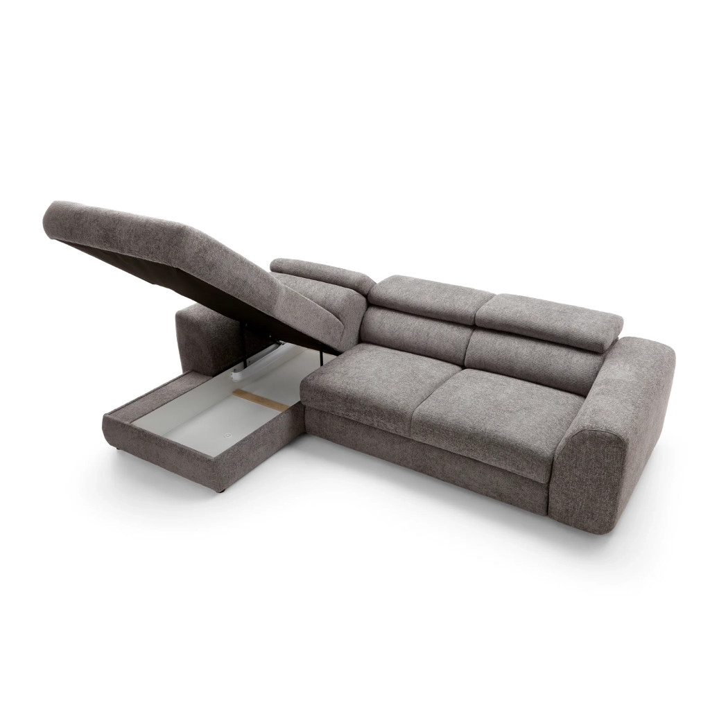 A kanapé nyitható funkcióval rendelkezik, így könnyedén kényelmes fekhellyé alakítható. A beépített, tágas ágyneműtartó praktikus tárolási lehetőséget kínál takarók, párnák és ágynemű számára, segítve az otthon rendezettségét.