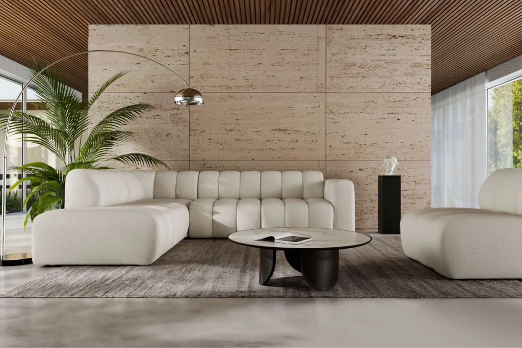 Az L alakú kialakítás bőséges ülőhelyet biztosít, miközben modern megjelenésével harmonikusan illeszkedik a legtöbb lakberendezési stílushoz.
