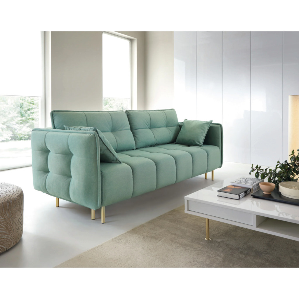 A kanapé egyszerűen nyitható, így gyorsan kényelmes fekhellyé alakítható. A beépített ágyneműtartó extra tárolóhelyet biztosít, amely segít rendben tartani az otthont – ideális takarók, párnák vagy ágynemű számára. Kényelmes ülő- és fekvőfelülete hosszú távon is komfortos használatot nyújt.