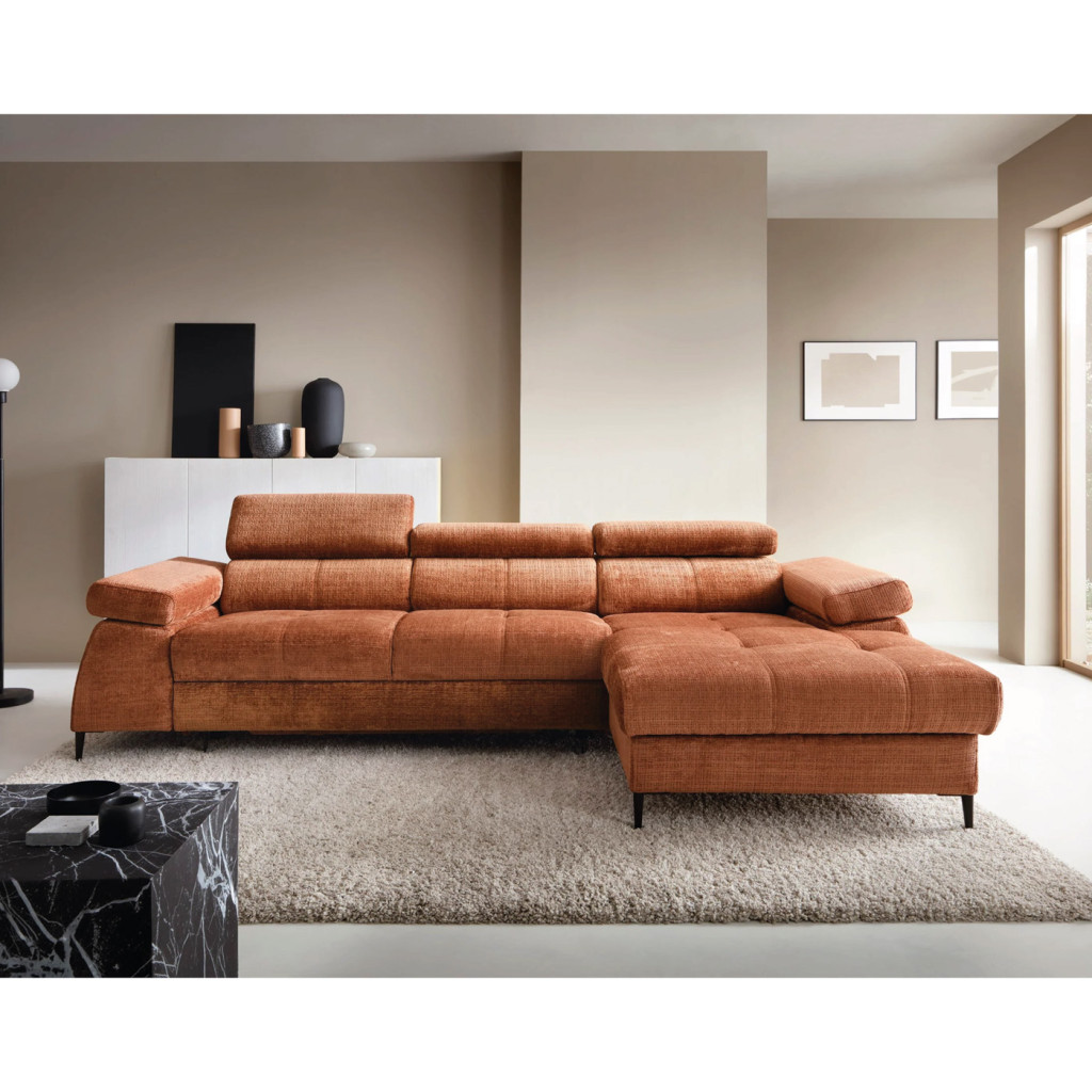 Az L alakú kialakítás bőséges ülőhelyet biztosít, miközben modern megjelenésével harmonikusan illeszkedik a legtöbb lakberendezési stílushoz.
