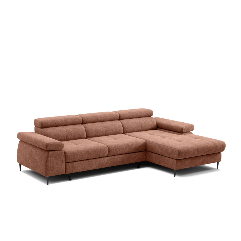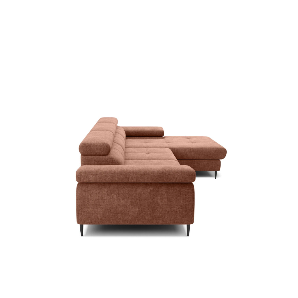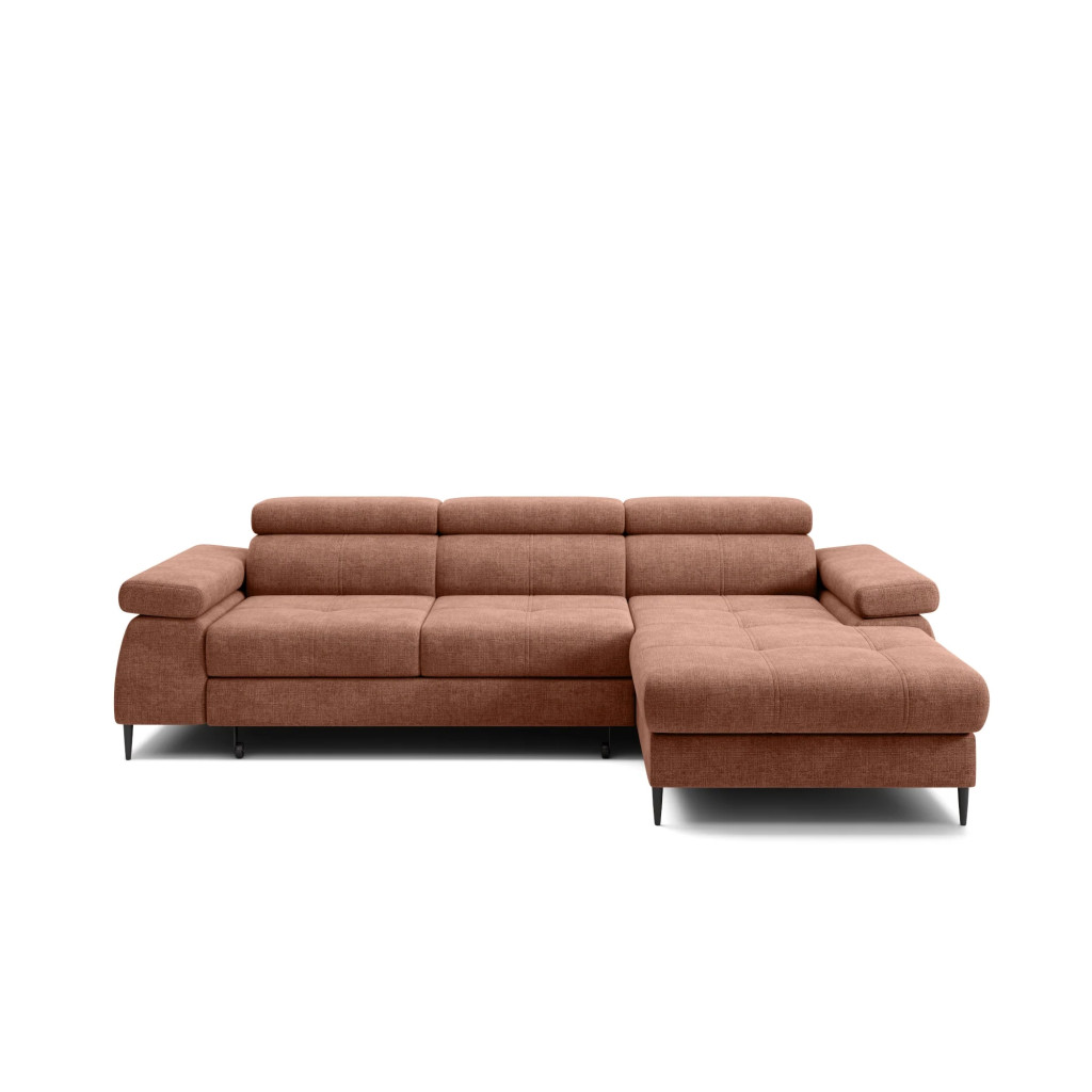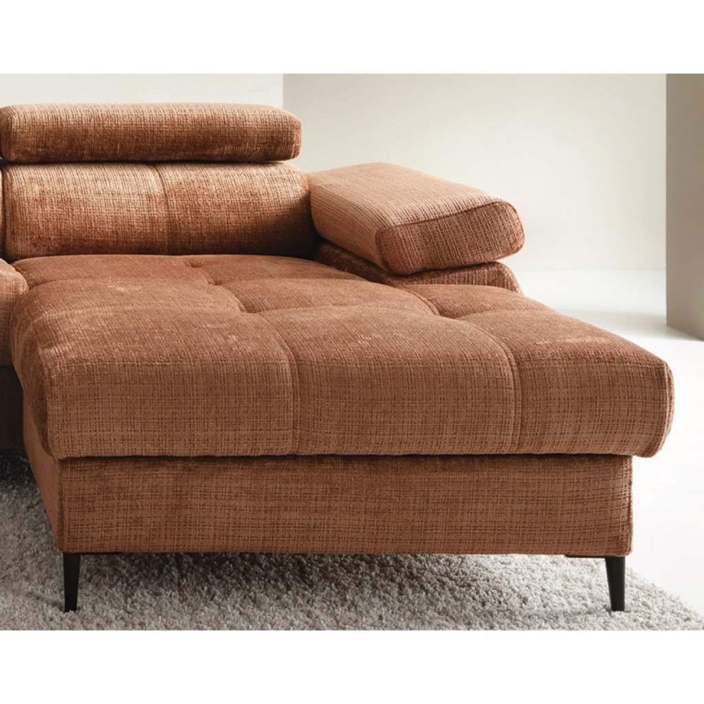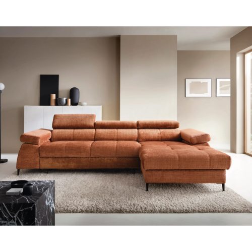 A termék több színben és széles szövetválasztékkal rendelhető, így könnyen személyre szabható az egyéni igényeknek megfelelően. A kanapé jobbos és balos kivitelben is elérhető, ami nagyfokú rugalmasságot biztosít a tér kihasználásában. Strapabíró felépítése és kényelmes ülőfelülete hosszú távon is megbízható használatot nyújt.