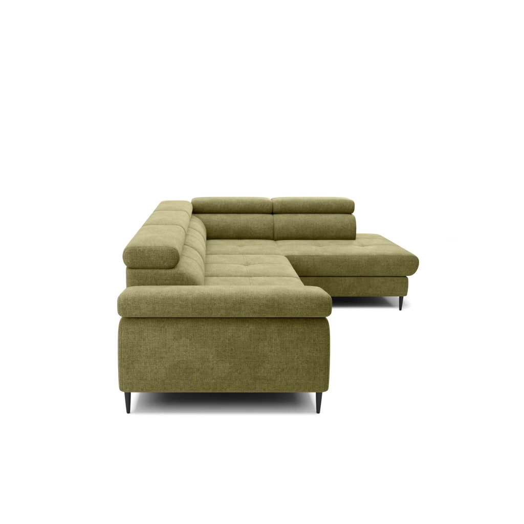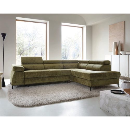 A termék több színben és széles szövetválasztékkal rendelhető, így könnyen személyre szabható az egyéni igényeknek megfelelően. A kanapé jobbos és balos kivitelben is elérhető, ami nagyfokú rugalmasságot biztosít a tér kihasználásában. Strapabíró felépítése és kényelmes ülőfelülete hosszú távon is megbízható használatot nyújt.