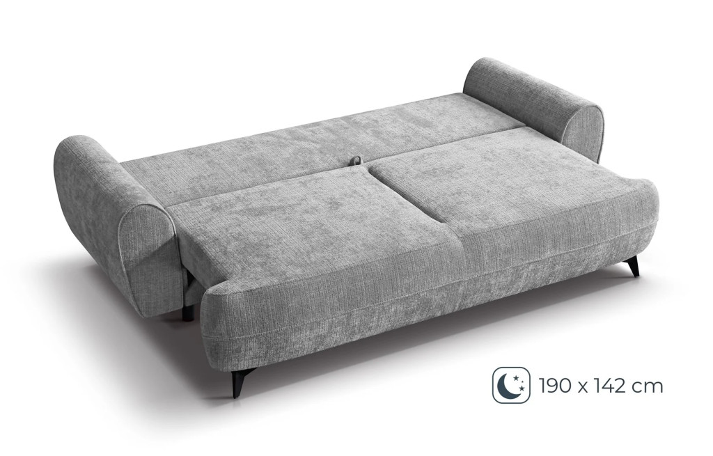 A kanapé egyszerűen nyitható, így gyorsan kényelmes fekhellyé alakítható. A beépített ágyneműtartó extra tárolóhelyet biztosít, amely segít rendben tartani az otthont – ideális takarók, párnák vagy ágynemű számára. Kényelmes ülő- és fekvőfelülete hosszú távon is komfortos használatot nyújt.