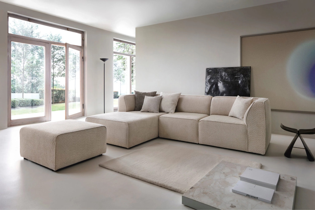 Az L alakú kialakítás bőséges ülőhelyet biztosít, miközben modern megjelenésével harmonikusan illeszkedik a legtöbb lakberendezési stílushoz.