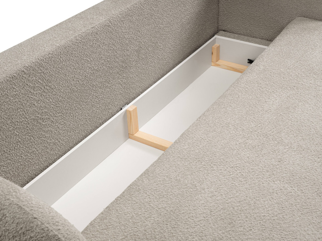 A kanapé egyszerűen nyitható, így gyorsan kényelmes fekhellyé alakítható. A beépített ágyneműtartó extra tárolóhelyet biztosít, amely segít rendben tartani az otthont – ideális takarók, párnák vagy ágynemű számára. Kényelmes ülő- és fekvőfelülete hosszú távon is komfortos használatot nyújt.