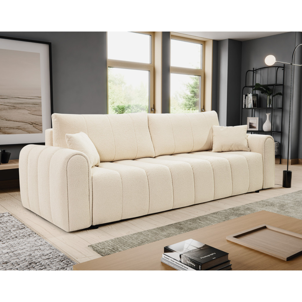 A kanapé egyszerűen nyitható, így gyorsan kényelmes fekhellyé alakítható. A beépített ágyneműtartó extra tárolóhelyet biztosít, amely segít rendben tartani az otthont – ideális takarók, párnák vagy ágynemű számára. Kényelmes ülő- és fekvőfelülete hosszú távon is komfortos használatot nyújt.