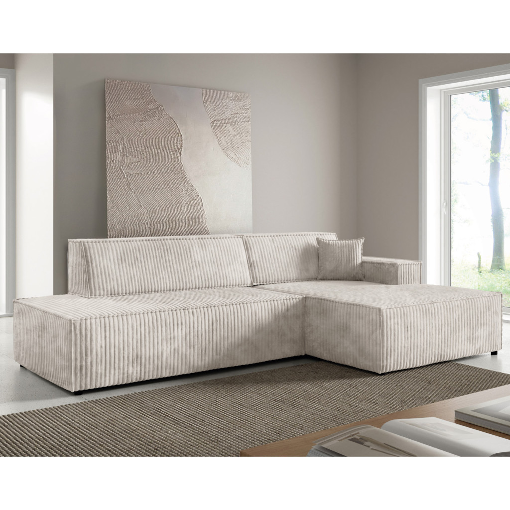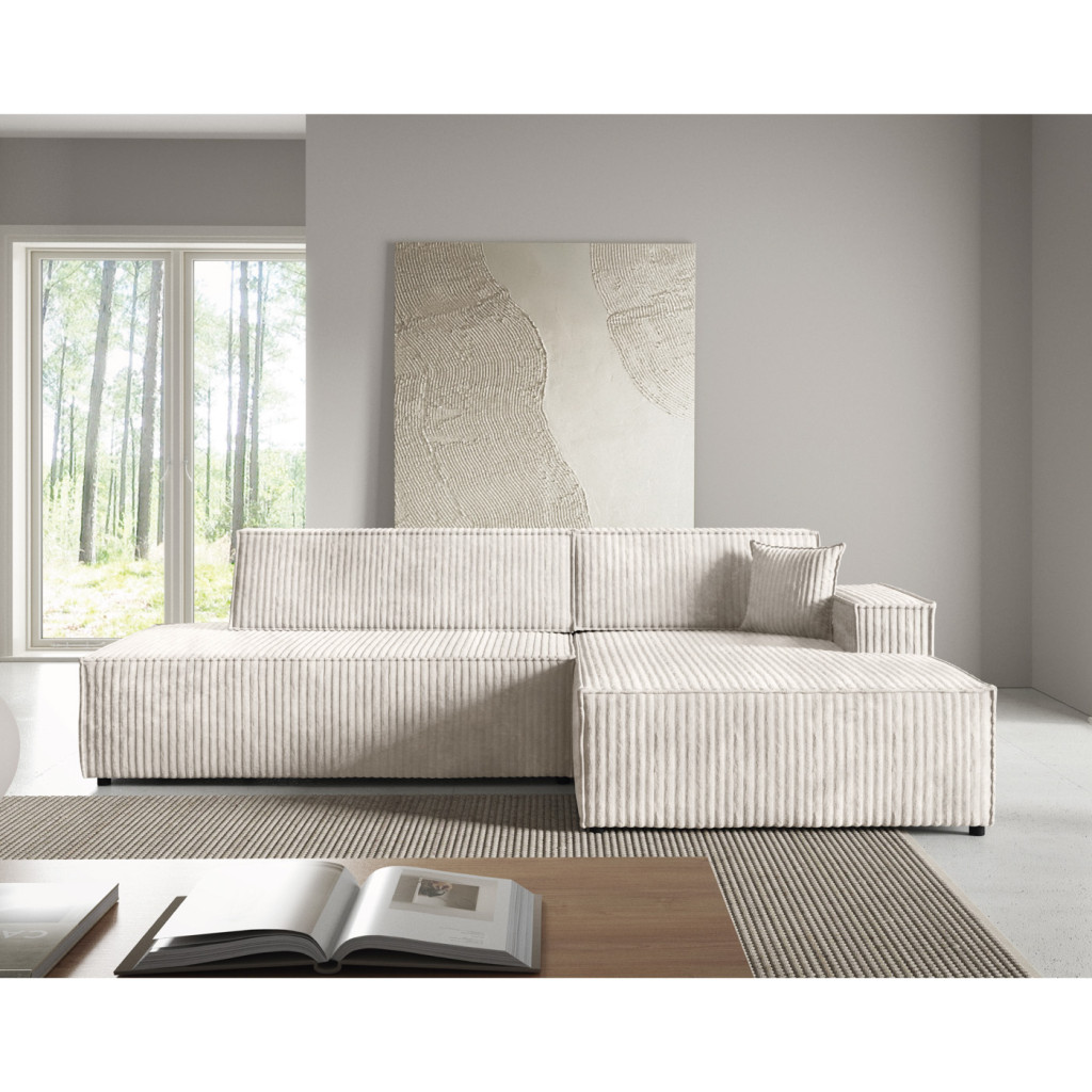 Az L alakú kialakítás bőséges ülőhelyet biztosít, miközben modern megjelenésével harmonikusan illeszkedik a legtöbb lakberendezési stílushoz.