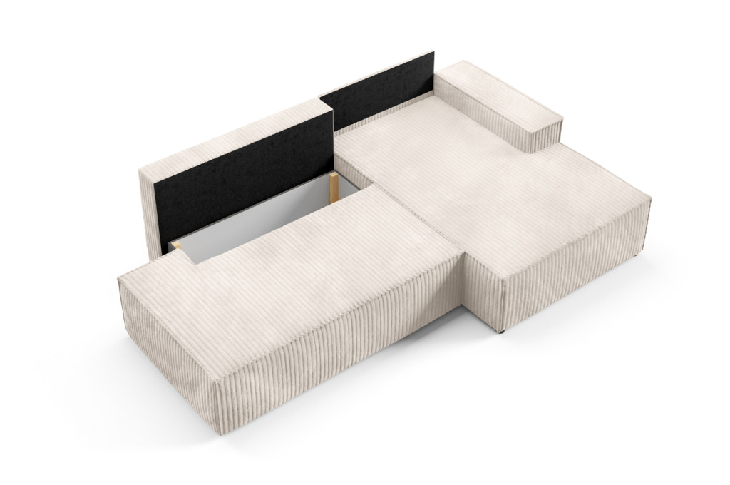 A kanapé nyitható funkcióval rendelkezik, így könnyedén kényelmes fekhellyé alakítható. A beépített, tágas ágyneműtartó praktikus tárolási lehetőséget kínál takarók, párnák és ágynemű számára, segítve az otthon rendezettségét.