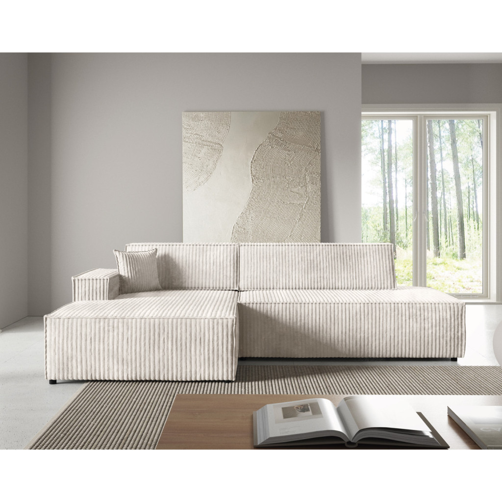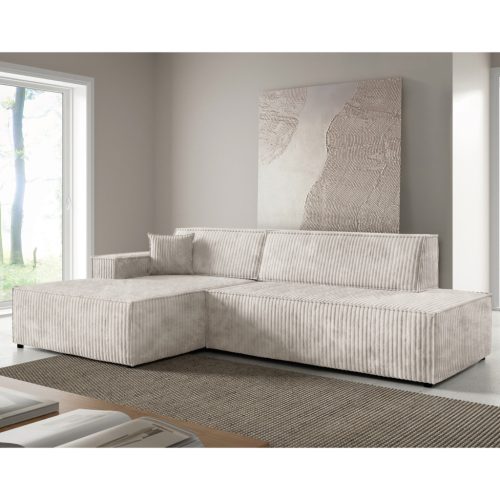 Az L alakú kialakítás bőséges ülőhelyet biztosít, miközben modern megjelenésével harmonikusan illeszkedik a legtöbb lakberendezési stílushoz.