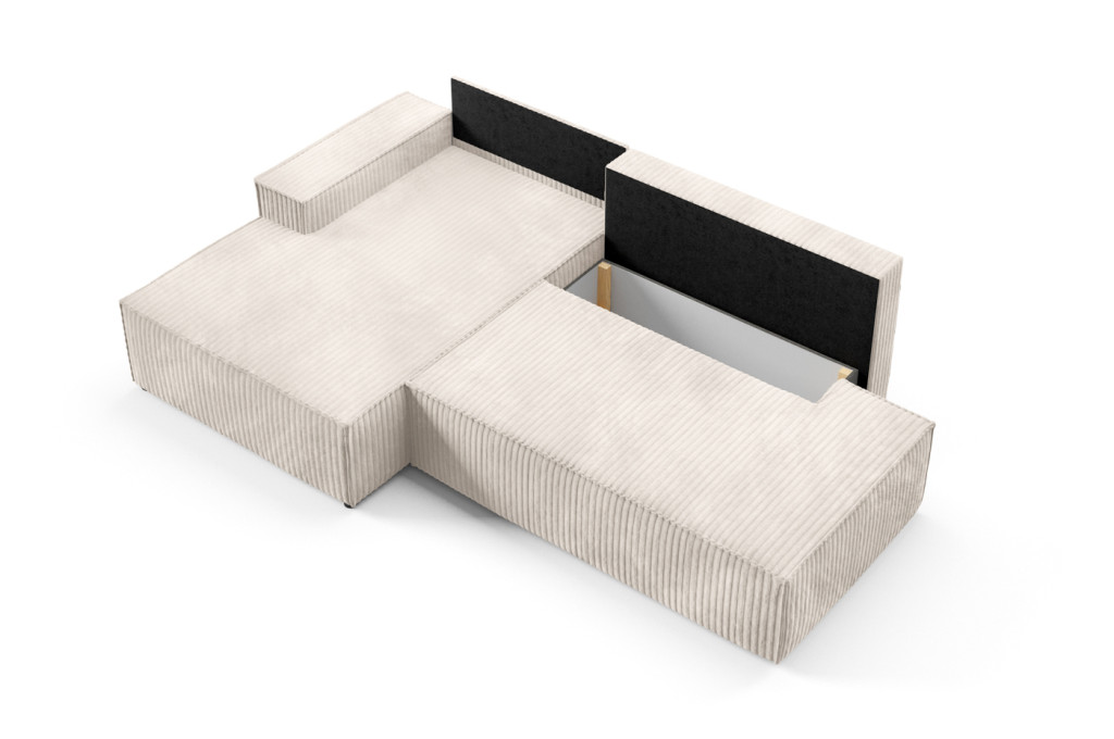 A kanapé nyitható funkcióval rendelkezik, így könnyedén kényelmes fekhellyé alakítható. A beépített, tágas ágyneműtartó praktikus tárolási lehetőséget kínál takarók, párnák és ágynemű számára, segítve az otthon rendezettségét.