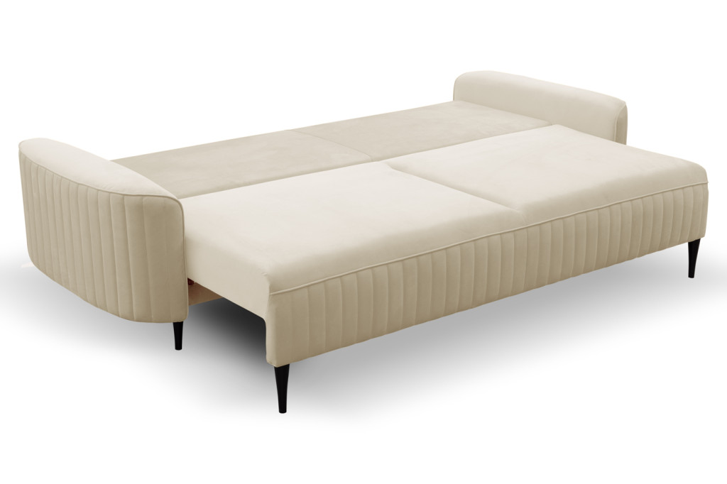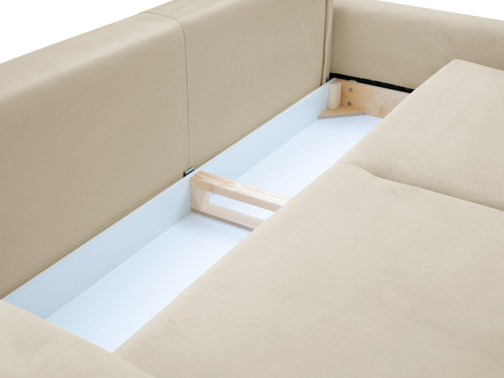A kanapé egyszerűen nyitható, így gyorsan kényelmes fekhellyé alakítható. A beépített ágyneműtartó extra tárolóhelyet biztosít, amely segít rendben tartani az otthont – ideális takarók, párnák vagy ágynemű számára. Kényelmes ülő- és fekvőfelülete hosszú távon is komfortos használatot nyújt.