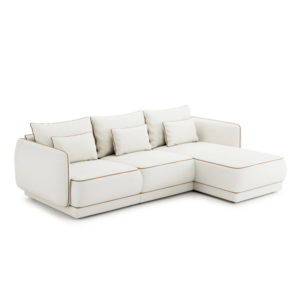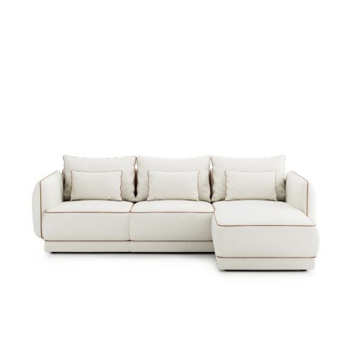 Az L alakú kialakítás bőséges ülőhelyet biztosít, miközben modern megjelenésével harmonikusan illeszkedik a legtöbb lakberendezési stílushoz.