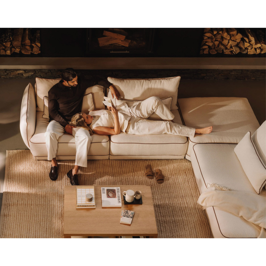 Az L alakú kialakítás bőséges ülőhelyet biztosít, miközben modern megjelenésével harmonikusan illeszkedik a legtöbb lakberendezési stílushoz.