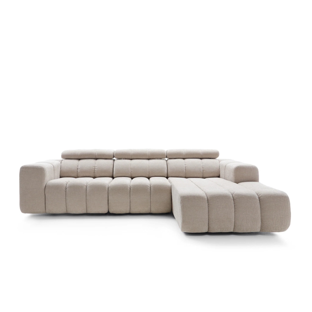 Az L alakú kialakítás bőséges ülőhelyet biztosít, miközben modern megjelenésével harmonikusan illeszkedik a legtöbb lakberendezési stílushoz.